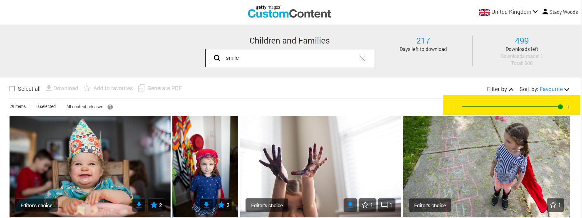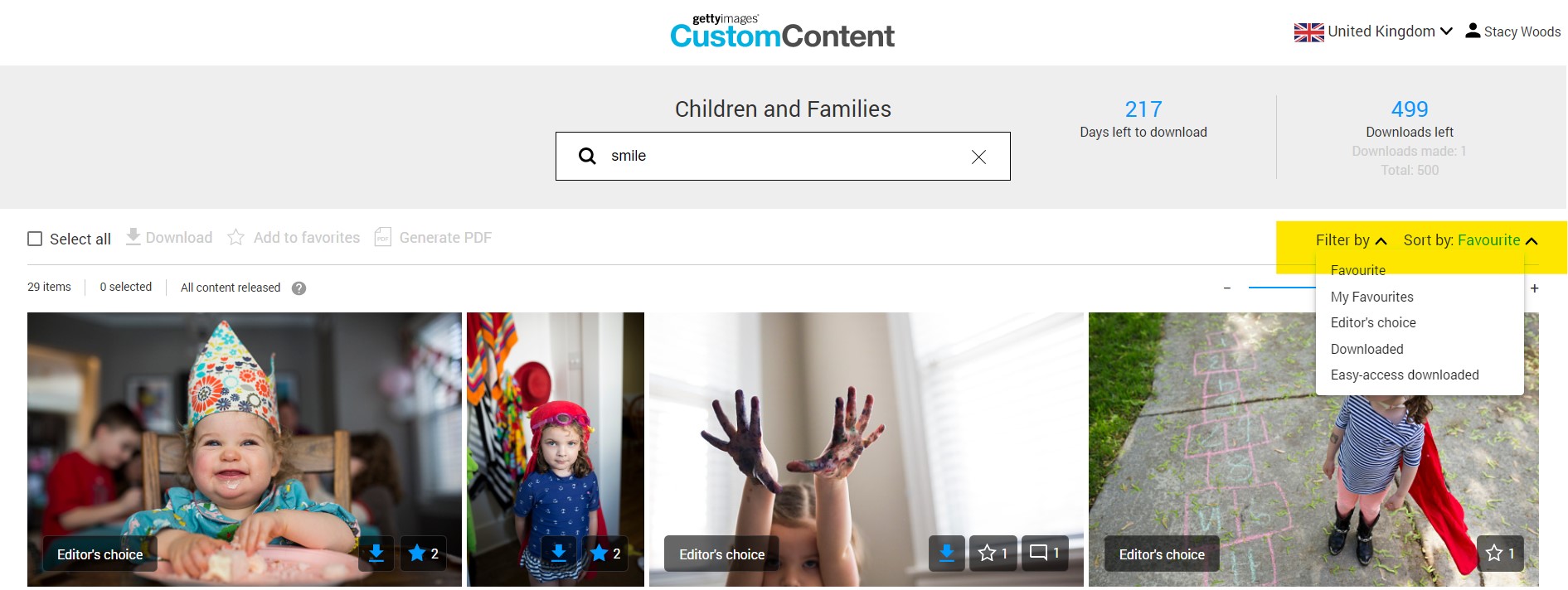 您和您的同事可以选择您最喜欢的图像或片段。 最喜欢的星形图标将显示完整的计数并且您可以通过收藏进行排序以看到最受欢迎的选择。
