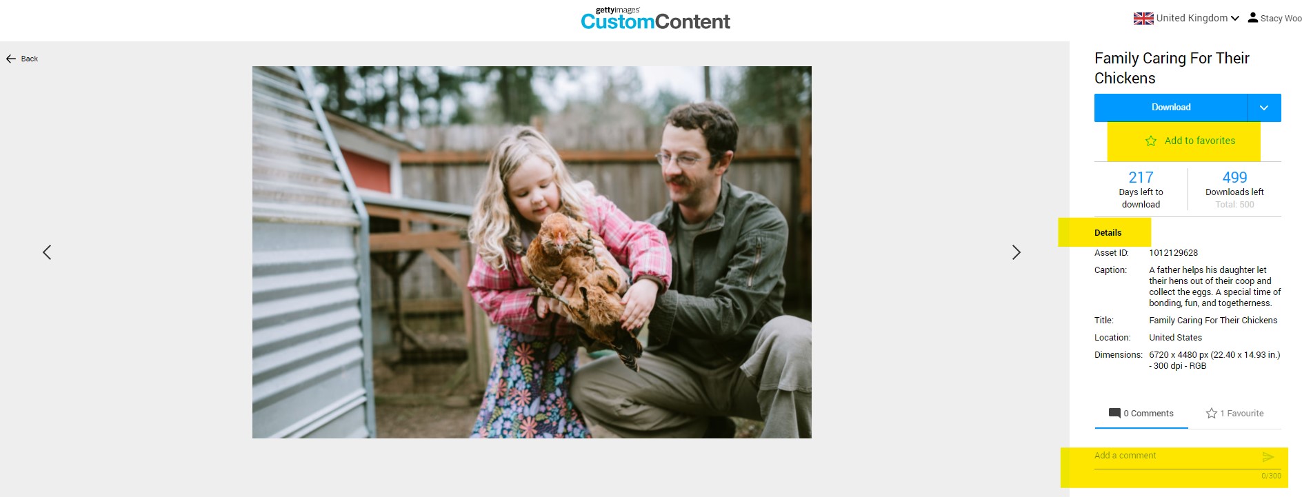 此页面提供更多信息,如位置和描述,用于图像或片段。 从这个页面,您也可以评论、添加到收藏夹和下载资产。